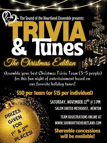 Christmas Trivia & Tunes - Team Registration Join us for an entertaining afternoon of Christmas music and crazy trivia! Assemble your best Christmas Trivia team of 3 to 5 people (aged 12 and up) to get a chance to win prizes! ... more |